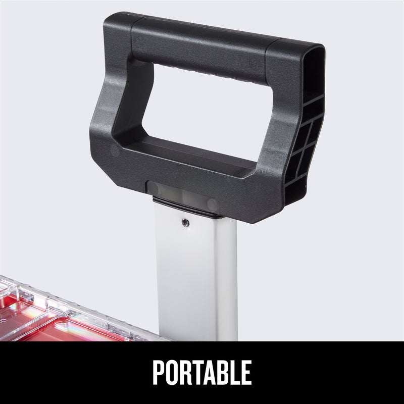 This water sealed Craftsman VERSASTACK system tower offers 3 essential products bottom rolling unit for large tools and items, middle tool box for large tools and suitcase for power tools and hand tools. The 3 units connect to each other through side latches for secure maneuverability.