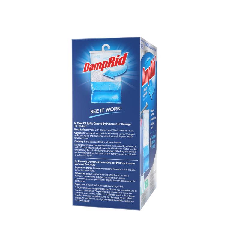 DampRid Hanging Bag Moisture Absorber attracts and traps excess moisture. The hanging bag design is perfect for closets, laundry rooms and storage areas where clothes often collect unpleasant odors. With more moisture absorbing power, DampRid lasts longer to absorb excess moisture, creating and maintaining the optimal humidity level wherever moisture is a problem. Each dehumidifying bag can last up to 60 days depending on the level of humidity and temperature. When the bag is finished, simply discard and replace.
