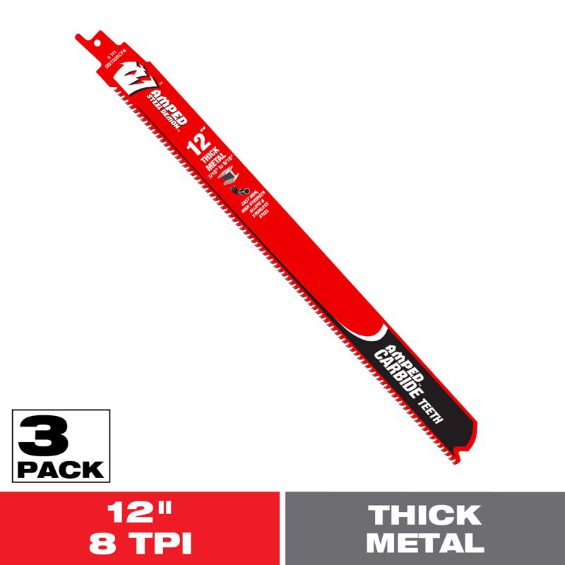 Diablo 12 in. Carbide Tipped Thick Metal Reciprocating Saw Blade 8 TPI 3 pk (DS1208CFA3)