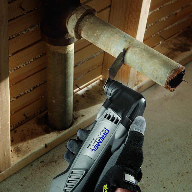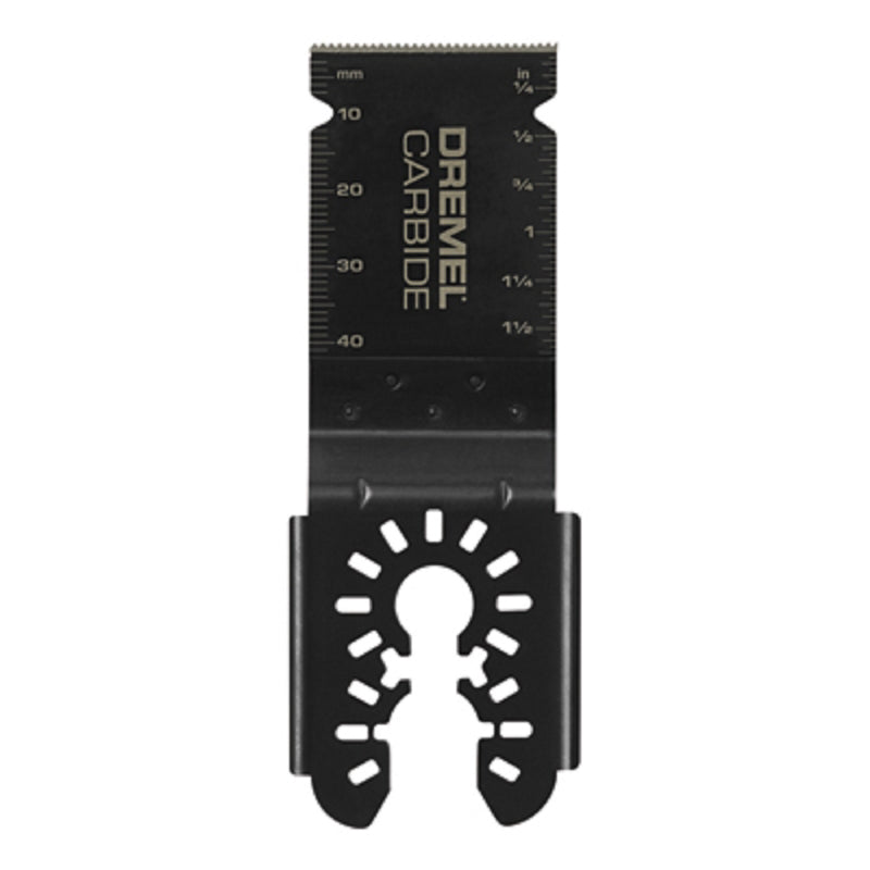 Dremel universal oscillating accessories are the first truly universal oscillating accessories available that require no adapter! The unique dual interface fits all competitive oscillating tools, including those with a quick change feature. The Dremel MM485U Universal Carbide Flush Cut Blade has high-performance carbide teeth designed to cut hard and abrasive materials like nails, screws, stainless steel bolts, galvanized pipe, plaster and lathe, cement board, fiber board, sheet metal, slate, ceramic wall tile and more. Its wide 1-1/4 in. blade speeds through long cuts and can make plunge cuts up to 1-11/16 in. deep.