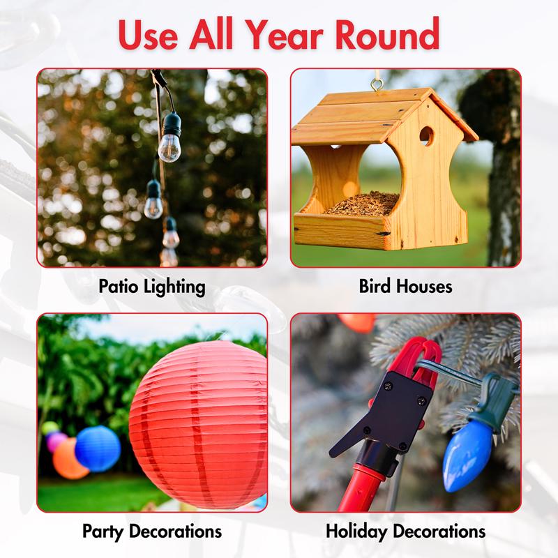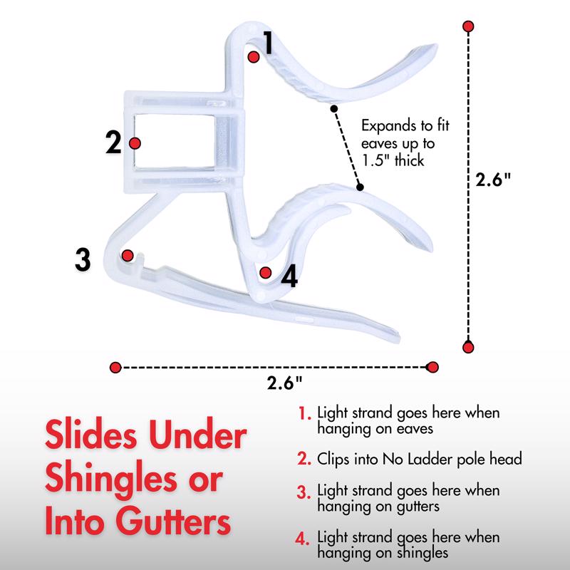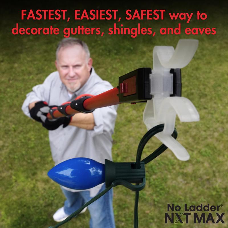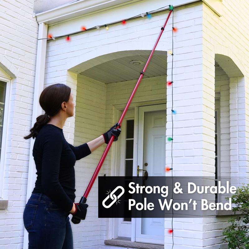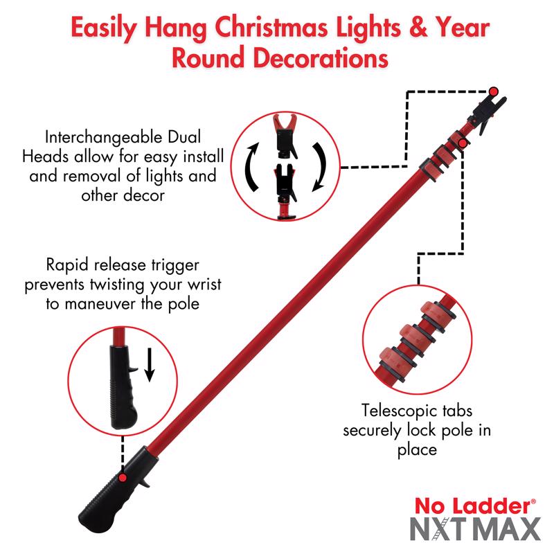 Ditch your ladder and make hanging lights around your house safe and easy with this telescoping light hanging pole. Pole extends to 11-feet for easy reach to eaves, gutters and shingles, and includes a rapid release trigger to make hanging your holiday lights a breeze. Kit also includes 2 interchangeable heads for enhanced function and 25 exclusive rapid release clips.