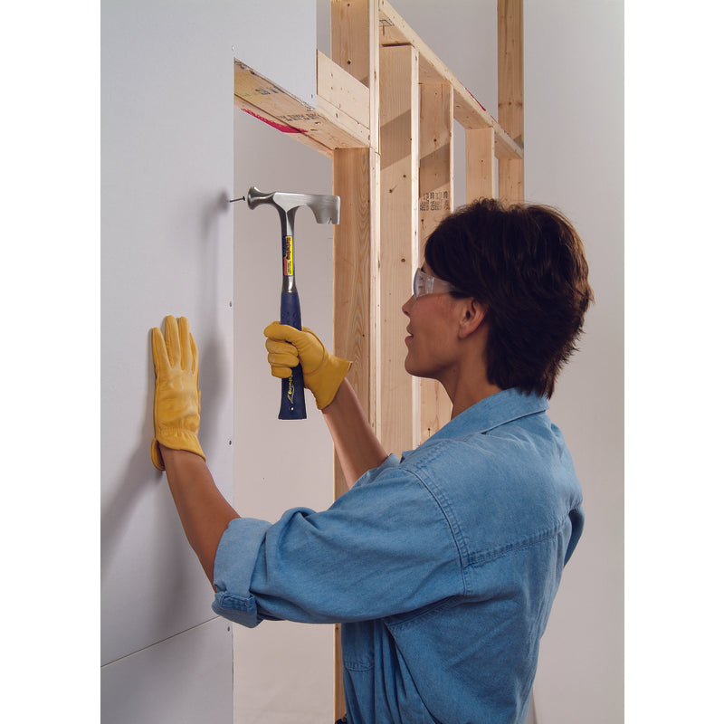 Estwings drywall hammer has a bonded and molded shock reduction grip that reduces shock up to 70% and will not come off. Estwing hammers are the only hammers that can make this claim. The head and handle are forged in 1-piece solid steel and are fully polished. Scored and rounded face for easy and proper nail driving, blade edge for scoring drywall. For drywall application scored and rounded face for easy and proper nail driving blade for scoring drywall. Protect your eyes from flying particles and dust. Always wear safety goggles. Bystanders shall also wear safety goggles.