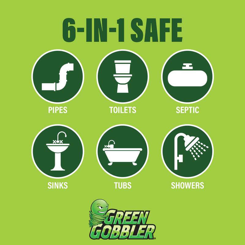 When slow-moving drains become a problem, it's time to send in Green Gobbler. Our Clog Preventer uses an enzyme enhanced formula and plant-based surfactant to break down buildup in pipes. It works to remove hair, organic matter, paper, soap scum, fats, oils, grease, proteins and starches to keep your pipes flowing properly. This formula contains a natural scent and is free from phosphates, chlorine and ammonia, making it safer for your pipes.
