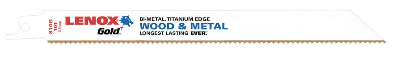 Lenox Gold 8 in. Bi-Metal Reciprocating Saw Blade 10 TPI 5 pk (21065810GR)
