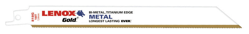 Lenox Gold 8 in. Bi-Metal Reciprocating Saw Blade 18 TPI 5 pk (21070818GR)