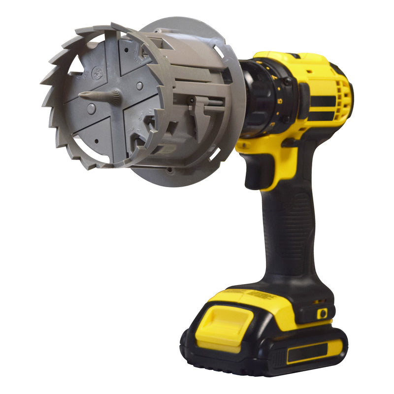 - Once the perfect hole is cut, remove the saw blade from the box by releasing the blade leg tabs