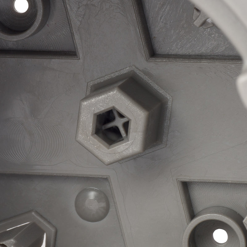 Absolutely a first of its kind, Shark Tooth was designed with the electrician in mind for installing over head lighting, wall sconces and smoke detectors. A built-in hole saw creates the perfect sized hole every time, while also making it easy to center-on-center mark. A piercing drill bit located at the center of the blade allows for pinpoint accuracy, requiring very little measuring and marking up the wall. Raised mounting rings with center hole are located inside the back wall of the box for surface mount installations, basement or attic studs.