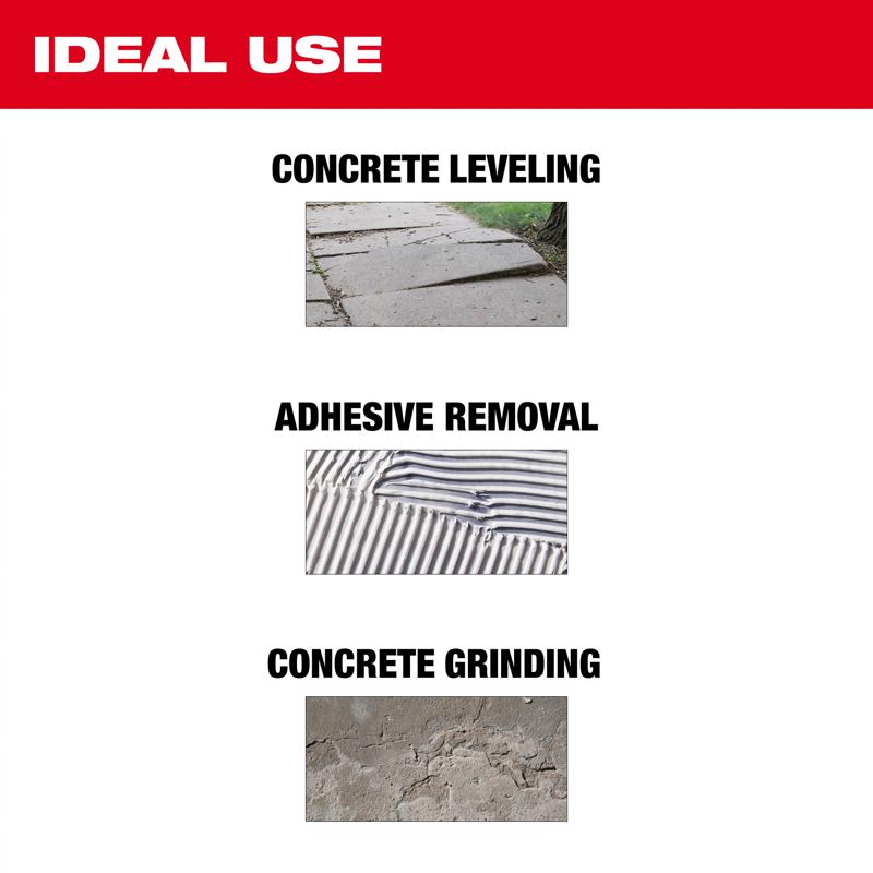 The Milwaukee Diamond Max Double Row Diamond Cup Wheels deliver up to 2X faster material removal. Milwaukee's unique diamond formula provides up to 5X life on concrete. The double-row cup wheels have increased surface contact for increased grinding control and a smooth surface finish. These diamond cup wheels are designed with a vented core for efficient dust extraction. Ideal for use in grinding concrete, leveling, and adhesive removal. Equipped with 5/8 in. -11 threaded arbor for use in angle grinders. For use wet and dry.
