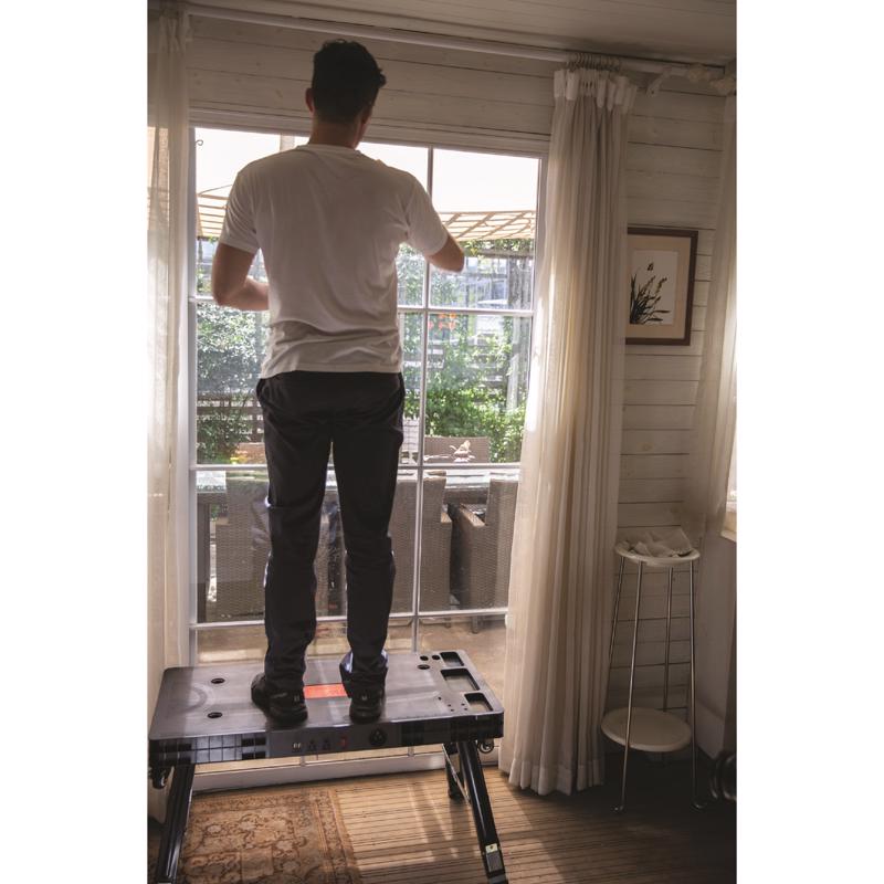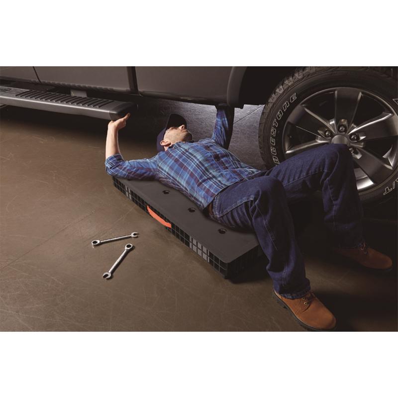 The OmniTable Plus is a workbench, clamping table, scaffold, dolly and creeper all in one. Large surface area to work and clamp. 110V power strip, USB to charge your phone and in line accessory storage for screws and convenient carry handle.