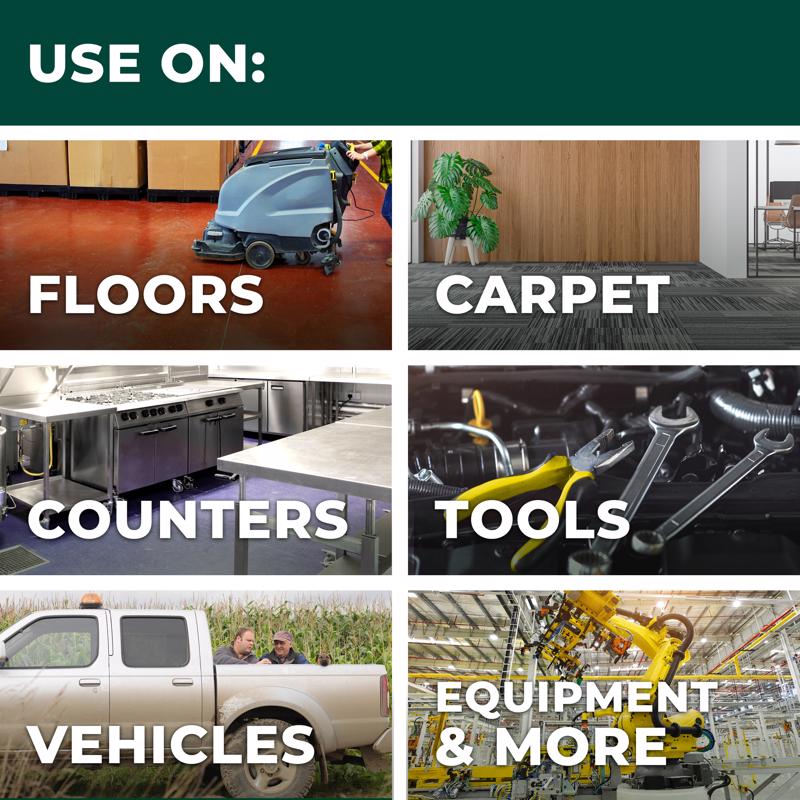 Simple Green Industrial Cleaner and Degreaser provides a safer alternative to caustic or acidic cleaners, bleaches and solvents. The trusted formula is non-abrasive and recognized by the U.S. EPA's Safer Choice Program as safer for people and the environment. Designed to be used on all washable surfaces, Simple Green powers away heavy dirt, grease, food residue and stains from countertops, sinks, tile, carpet, flooring, upholstery and more. The cost-effective concentrate can be used manually or in cleaning equipment such as such as floor scrubbers, dip tanks, carpet extractors, pressure washers, steam extractors and foamers. Easily cuts through tough grease, oils, cutting fluids, and built-up grime on equipment, engines, machinery, vehicles and manufactured parts making it ideal for a wide range of industries including janitorial, manufacturing, MRO, food processing, mining, automotive, transportation and engineering