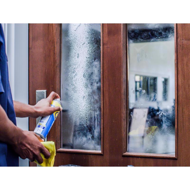 Cleaning glass is difficult enough without having to chase after a liquid cleaner as it runs down the vertical surface. Zep Commercial foaming glass cleaner sprays evenly and stays in place while you quickly and easily wipe away dirt, fingerprints, smudges and even grease. It's safe for all types of non-porous surfaces.