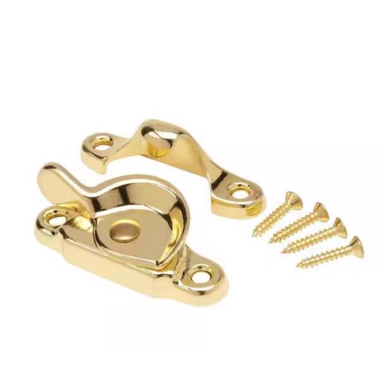 This sash lock is constructed of diecast zinc and comes in a bright brass finish. It features a cam-action latching design, and it is designed for use on wooden double hung windows. These locks mount on the checkrails of the top and bottom sash, and they