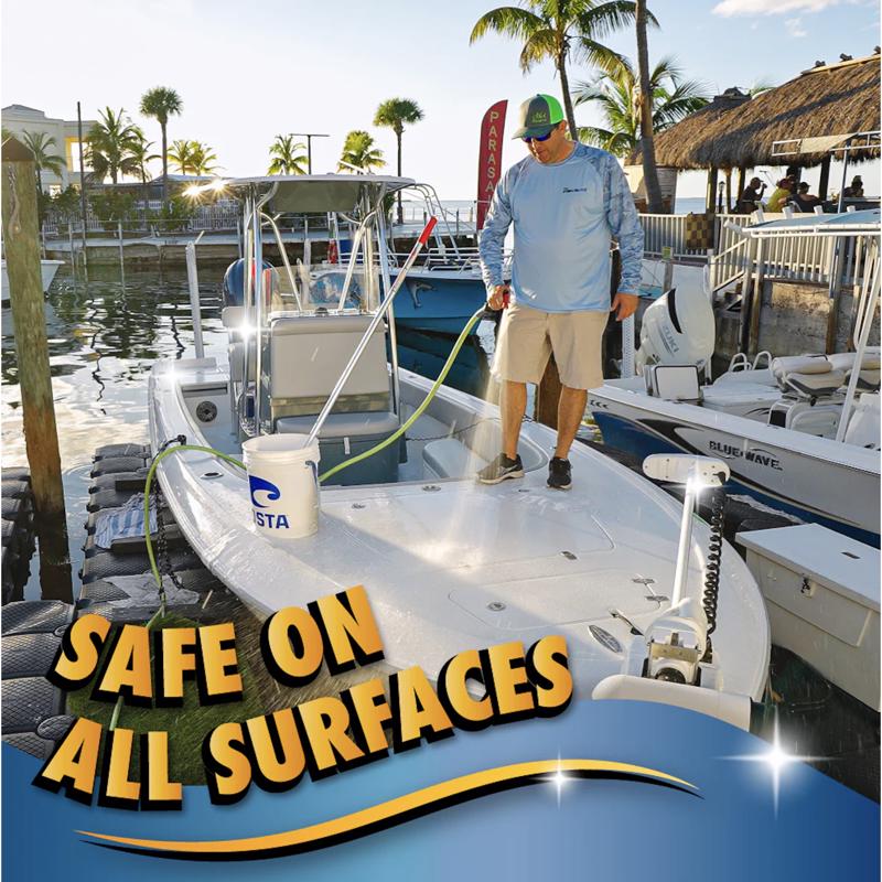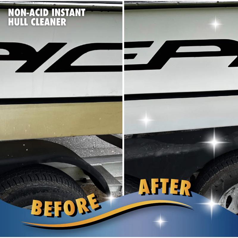 Clean the dirtiest of hulls, removing water lines, scum lines, fish blood and stains. The powerful marine-grade ingredients are engineered to remove tough stains in a single application. Not for use to remove rust stains. Just spray on, let it remain on the surface for two minutes and rinse off with fresh water.
