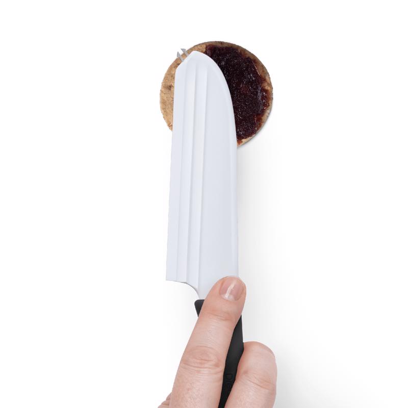 Knibble Lite is a non-stick cheese knife that slices, spreads, and even forks to serve your nibbles. Knibble Lite is the plastic version of our award-winning Knibble. Knibble Lite's unique barbed blade creates air pockets to stop cheese from sticking. Stainless steel forks are perfect for serving and dont extend beyond the profile of the blade for safety.
