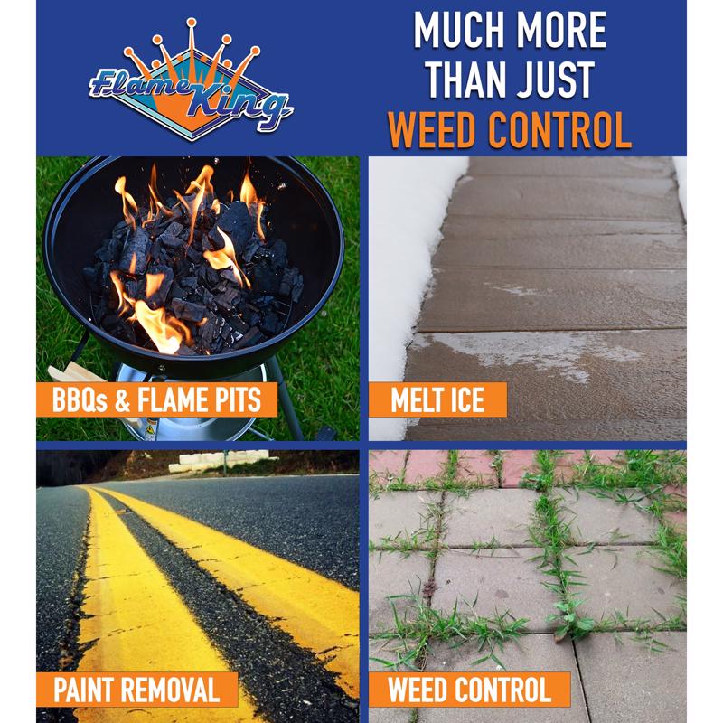 The Flame King 500K Propane Torch Burner with built-in igniter is perfect for many different uses; melting snow and ice, removing parking lot markings, paint removal, thawing frozen pipes and equipment, melting tar and asphalt, and so much more. It is designed with a molded handle for added control and a built-in igniter for easier lighting. The Flame King 500K Torch comes fully assembled and ready to use. At 500,000 BTU this is the ultimate torch for your heavy-duty jobs. This torch is compatible with standard liquid propane cylinders including - 5 lb., 10 lb., 20 lb., 30 lb., and 40 lb. propane cylinders. The torch includes a 10-ft hose rated at 350 PSI, as well as a brass adjusting valve to control the flame. Propane cylinder sold separately.
