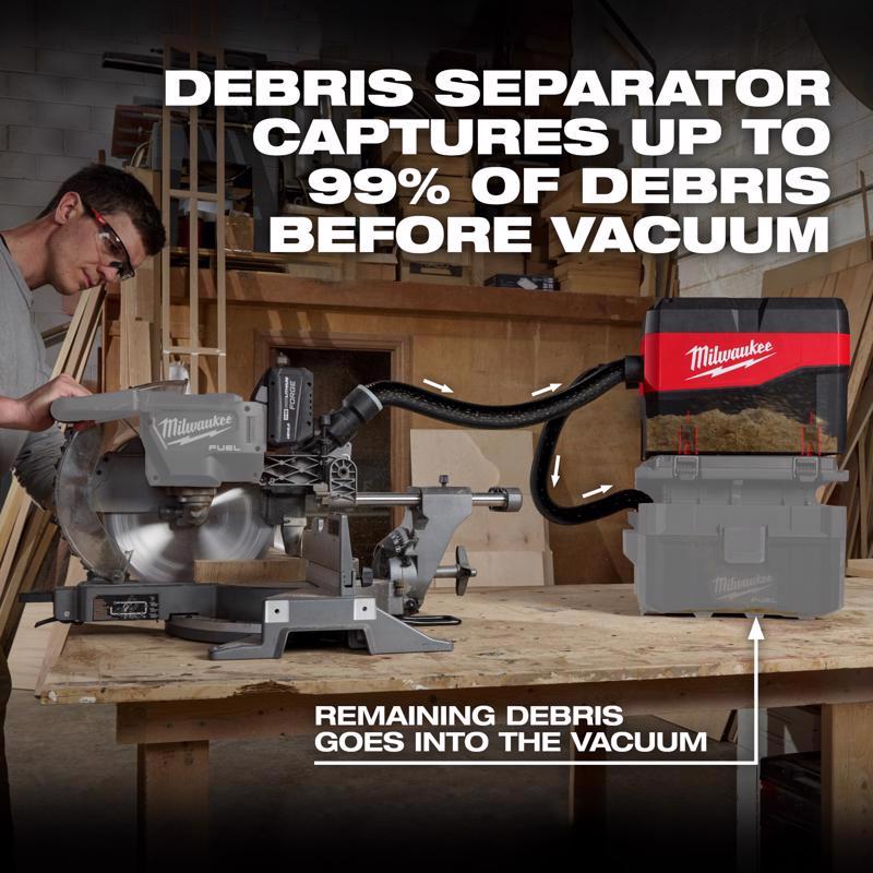 The Milwaukee Packout compact debris separator is an accessory that requires use with a wet/dry vacuum. When paired together, the debris separator provides less filter clogs, consistent suction, and total mobility. This dust separator is compatible with a