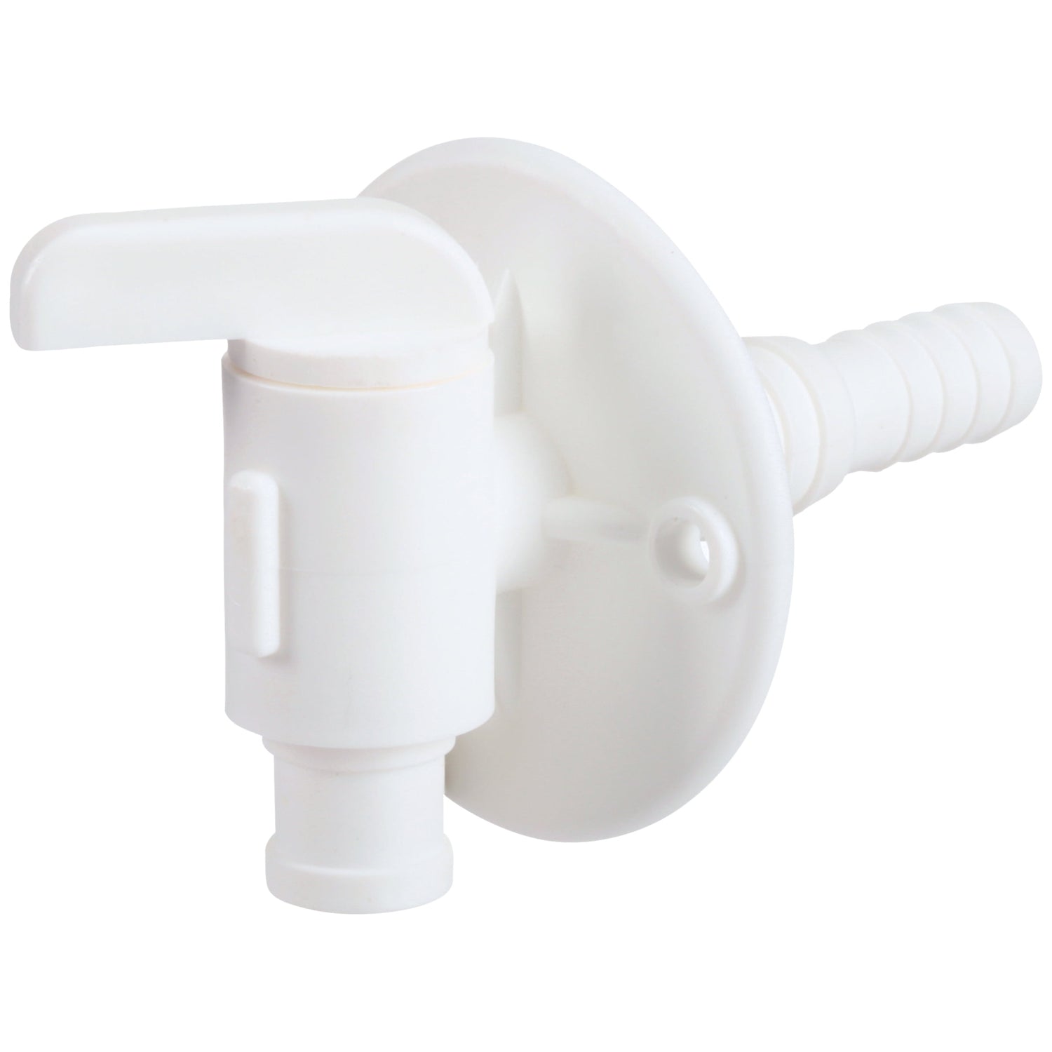 Dual Size Drain Valve - Dual size drain valves easily drain your RV fresh water tank. Durable plastic construction. Comes with 3/8 in. flange or 1/2 in. barb. Is graduated for use with 1/2 in. or 3/8 in. vinyl tubing.