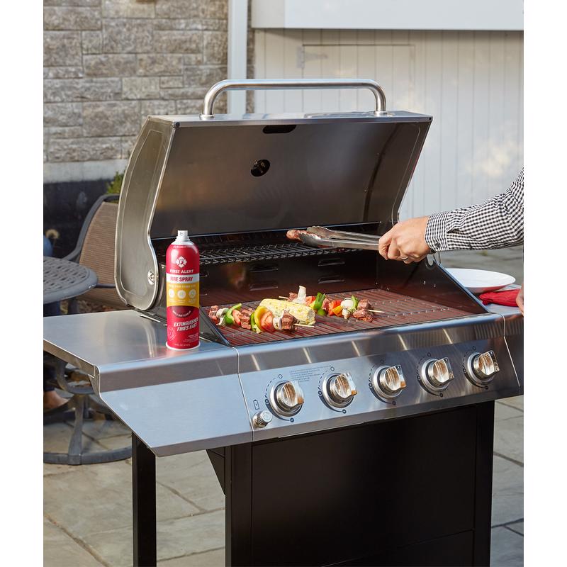 Unattended cooking is the number one of cause of home fires. Equip your kitchen with First Alert's EZ Fire Spray to help be prepared. It discharges four times longer than a regular fire extinguisher, making it effective against common household fires including grease fires. The portable size and aerosol spray nozzle make using this product fast and simple for at home, on boats, RVs, and while traveling.
