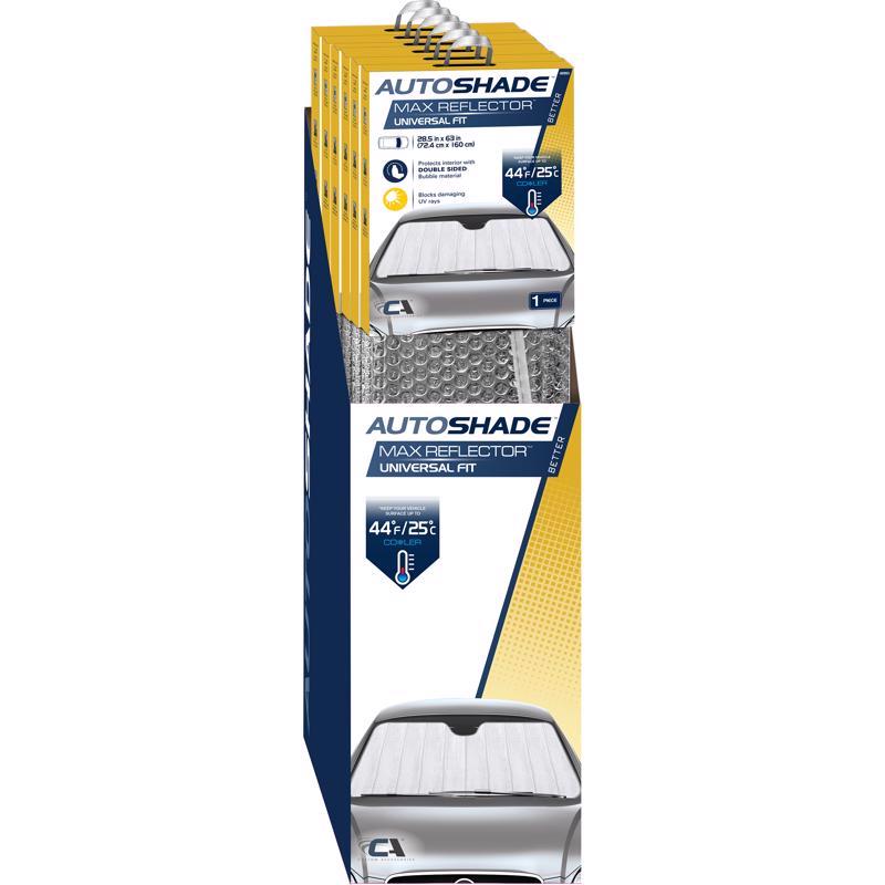 Universal size silver max reflector sunshade keeps your vehicle's interior cool and protected under the harshest conditions. When your vehicle is parked in the sun all day, extreme heat can build up making your vehicle uncomfortable. Worse yet, damaging UV rays can destroy your vehicle's dash and interior. Tests show that the proper sunshade can keep your vehicle up to 44 degrees cooler. This shade blocks heat and damaging UV rays while your vehicle is parked in the sun. Engineered to fit most cars, small trucks, and SUV's.