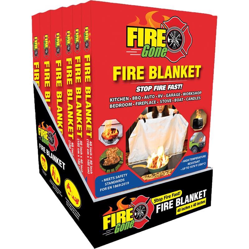 The Fire Gone Fire Blanket is a reliable, easy-to-use safety tool designed for extinguishing small fires in emergencies. Made from fire-resistant premium fiberglass with no added chemicals, it effectively smothers flames and cuts off the oxygen supply to stop fires from spreading. Ideal for use in homes, kitchens, workshops, and vehicles, it is suitable for Class A combustibles like paper and wood, Class B flammable liquids, and Class F/K cooking oil fires. Lightweight, portable, and heat resistant to over 1000 degrees, the Fire Gone Fire Blanket leaves no mess, unlike traditional fire extinguishers, making it a convenient choice for fire safety.