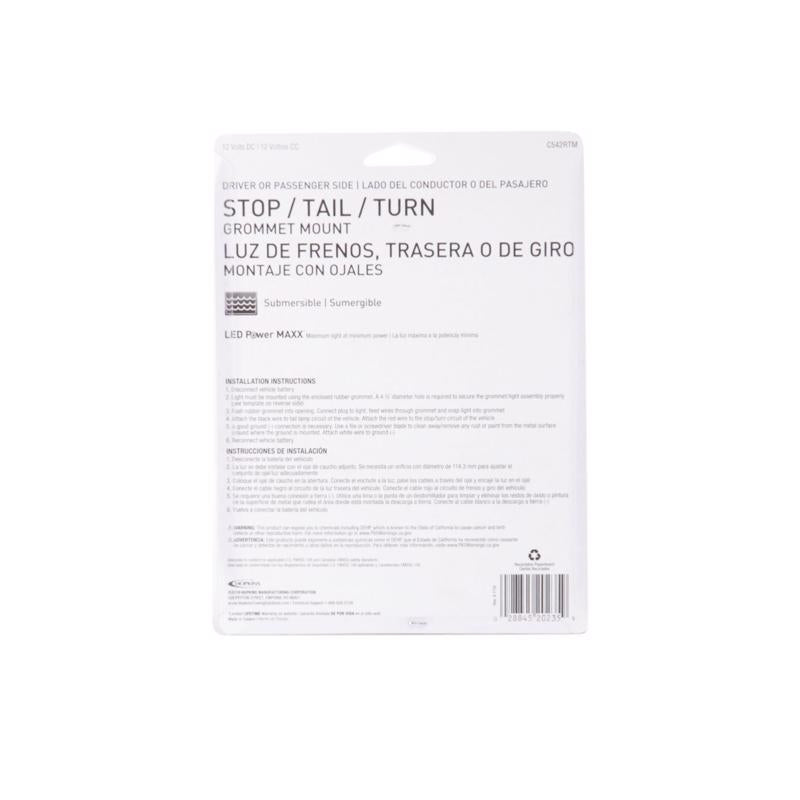 The LED 4" round stop/tail/turn light is designed to conform to applicable US FMVSS108 and Canadian CMVSS safety standards. It contains high-output LEDs for exceptional brightness and performance on vehicles over or under 80" wide. The life of a LED light far exceeds traditional incandescent lights and draws significantly less power than traditional halogen bulbs. The polycarbonate lens and resin housing are sonic welded to prevent moisture and corrosion