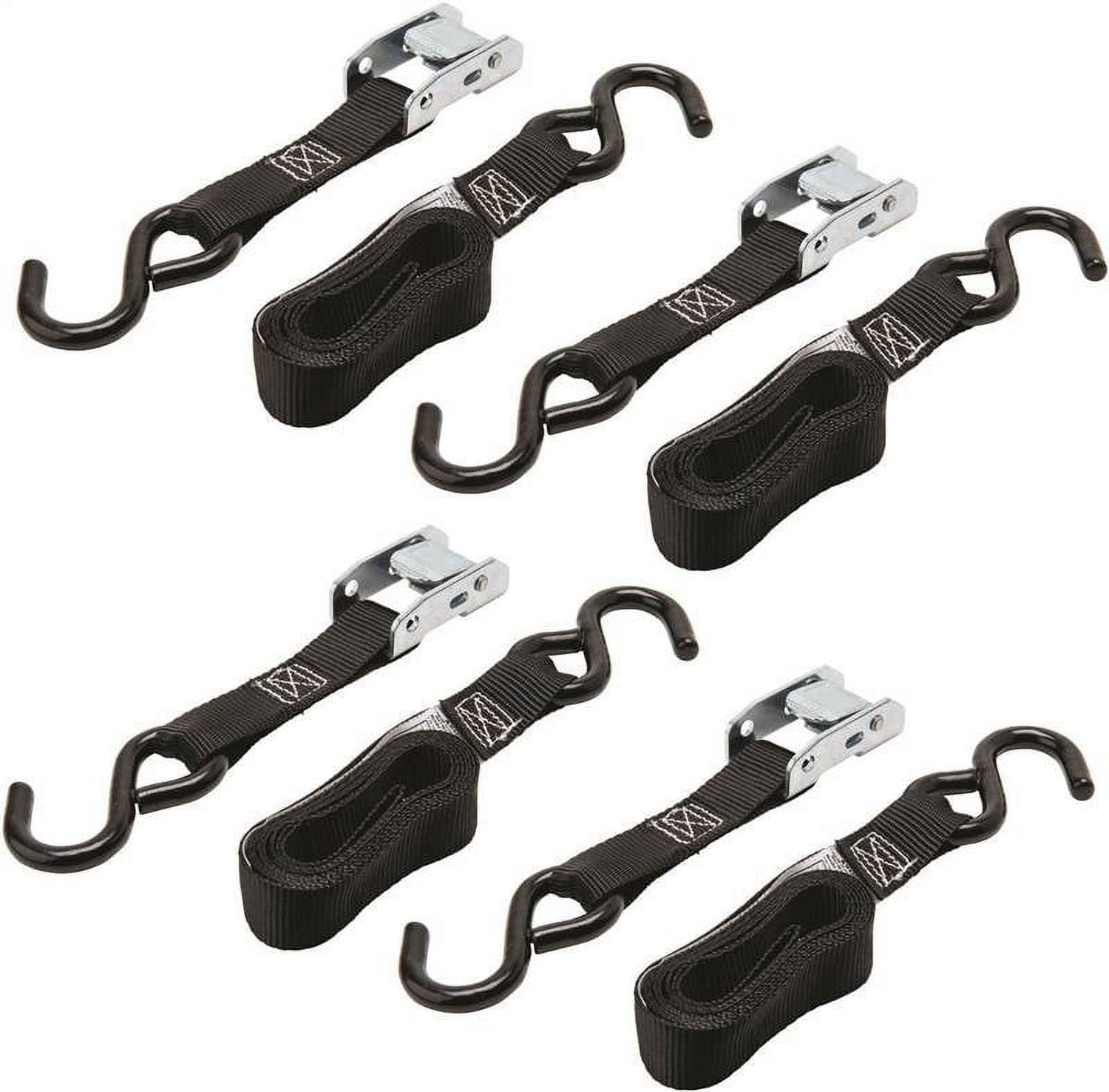 Keeper Cam Buckle Tie-Downsare the perfect alternative to rope, twine and other less efficient methods of securing cargo. The cam buckle is convenient and easy to use and includes a quick-release thumb button, eliminating the need to spend time tying and untying unreliable knots. Cam buckles work in conjunction with compact, vinyl-coated S-Hooks that retain their durability even under the most demanding conditions. With a 300 lbs. working load limit and 900 lb. break strength, Keeper Cam Buckle Tie-Downs are ideal for securing smaller loads.