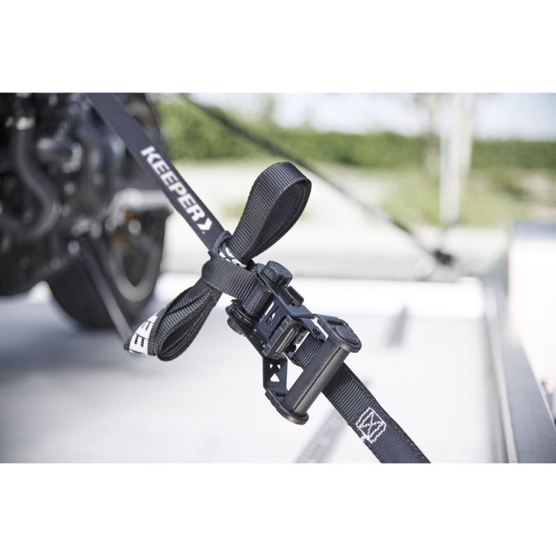 When the going gets tough, the tough reach for the Keeper Combat Ratchet Tie-Down. The 1 in. wide Extreme Webbing is more abrasion and cut resistant than other tie-downs. The extra wide, diamond ridge handles guarantee a "No Slip Grip" and ease of use even when wearing gloves.