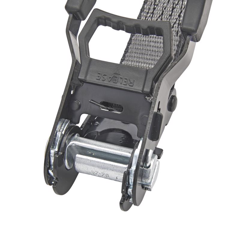 The 16 ft. Kwikfeed Ratchet Tie Down features Keeper's patented technology that allows you to slide in the webbing. Easy for novice and fast for the Expert. No need to pull the entire webbing through the ratchet when securing the load. Giving reliability and durability when securing your load this tie downs come with ExtremeEdge webbing that is 30 percent more cut resistant and 67 percent more abrasion resistant. It is constructed with a coated S-hook that has a safety hook that does not allow your hook to slip off. Over sized handle that allows your to secure your load with gloves.