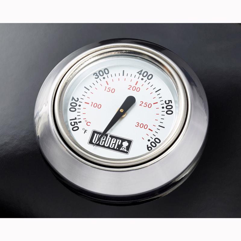 Get the performance you know and love from a Weber kettle with ingenious space to prep and serve with the 22in Performer Charcoal Grill. This grill is built into a premium cart with a sturdy storage shelf, a side table, and a Weber Works side rail that fits snap on accessories. Two wheels make it easy to move around your space. Grill confidently for years to come with the same features as the iconic Weber kettle including a hand-applied, porcelain-enameled finish that is scratch and rust-resistant, adjustable dampers that let you control the temperature inside the grill, and an improved One-Touch cleaning system that makes ash removal quick and easy. The durable, hinged cooking grate flips up on either side allowing you to easily add more fuel, and the Tuck-Away lid holder gives you a convenient place to nest the lid against the side of the bowl