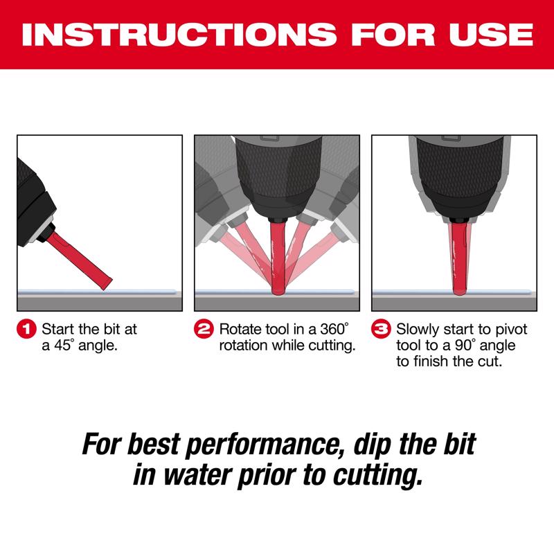Choose the Milwaukee Diamond Plus Hole Saw for up to 10X longer life when cutting tile, stone and glass. Diamond Plus Hole Saws deliver best-in-class performance, with higher grade diamonds for maximum heat and fracture resistance. An improved braze provides superior diamond retention when cutting hard, abrasive materials. The Diamond Plus Threaded Hole Saw features large slot geometry for easy plug removal. Designed as the single cutting solution for all tile, stone and glass applications, Diamond Plus offers the lowest cost-per-hole on the market. Use it with standard hole saw arbors or with the Angle Grinder Adapter (49-56-7103) or Retractable Starter Bit (49-56-8025) for even greater productivity and ease of use.