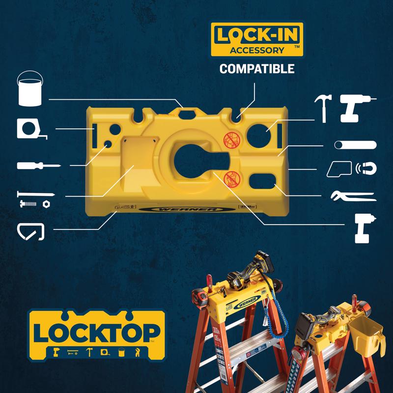 The 6205 Fiberglass 5ft Step Ladder is ideal for any professional. With a duty rating of 300 lbs, it features a LOCKTOP which provides maximum storage capacity for most frequently used tools and components. The LOCKTOP features an impact driver slot to safely hold the #1 most used tool by professionals today. The steel plate on the side helps expand it's storage by allowing the use of magnetic accessories, such as lights and laser levels. Three anchor points allow for tools to be tethered to the top to prevent injuries and damages below from falling tools. The patented Lock-in system works with a full line of accessories which extends the usable space on the top. Fiberglass rails are non-conductive for working near electricity. The steps are fully braced and the back of the ladder has a full set of rear horizontals which provides durability and stability. The EDGE bracing system helps protect the rails from damage. The 6205 incorporates a wider base than code requires which provides tip resistance pros depend on.