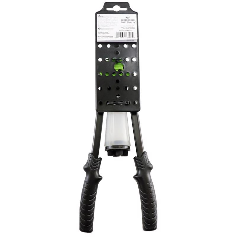 The Surebonder 1/4 in. Heavy-Duty Manual Rivet Tool is a must for your projects/repairs that need a larger diameter rivet. This tool will also accommodate projects/repairs that require a smaller diameter rivet. Riveting provides neatness and strength fastening. Rivets come in a variety of materials and sizes for endless fastening possibilities. This tool sets the following aluminum and steel diameter rivets - 3/32 in., 1/8 in., 5/32 in., 3/16 in., 1/4 in., stainless steel 1/8 in., 5/32 in., 3/16 in., 1/4 in. and copper 1/8 in. and 15/64 in