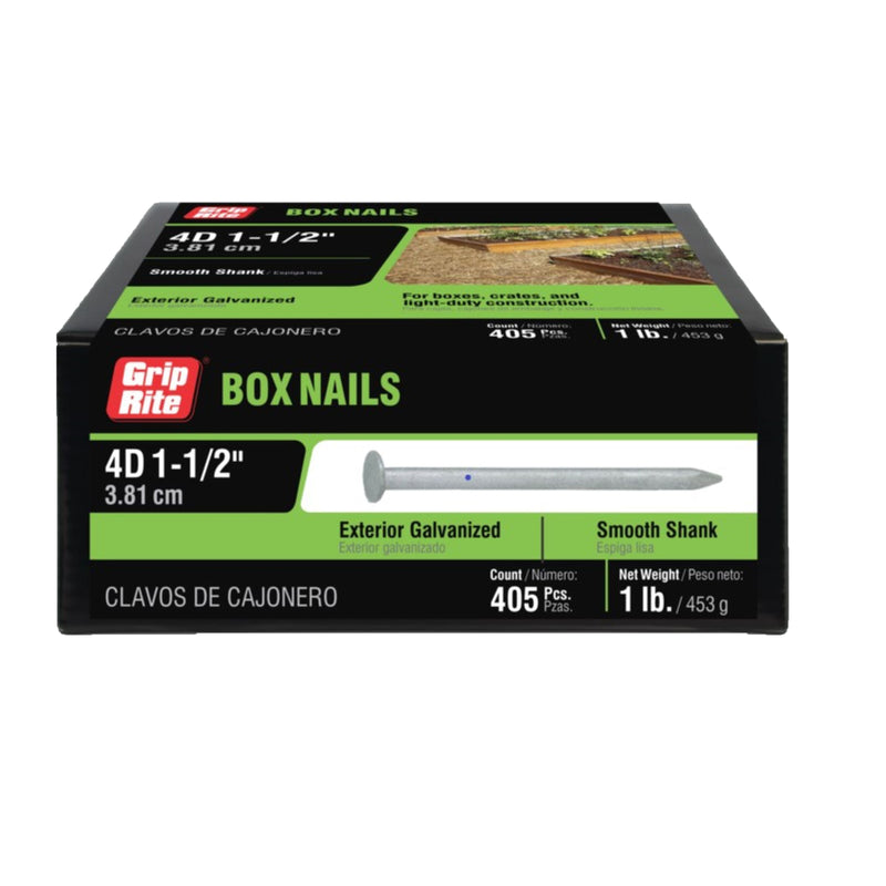 Grip-Rite 4D 1-1/2 in. Box Hot-Dipped Galvanized Steel Nail Flat Head 1 lb (4HGBX1)