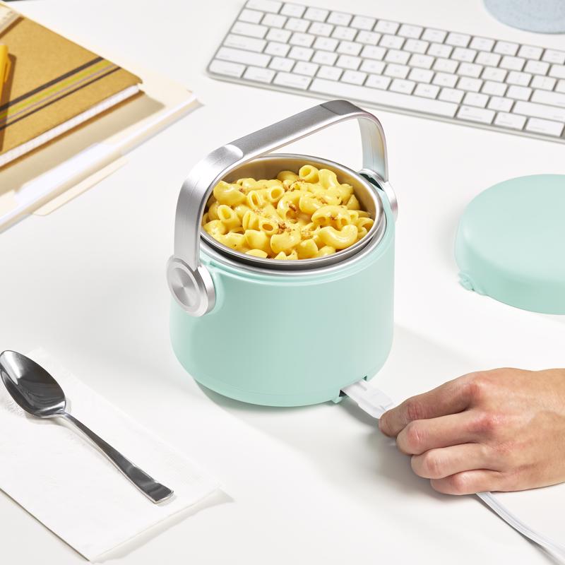 Bring the heat with the Dash Hot2Go Electric Lunchbox. Food is ready to eat in about 45 minutes after you plug in, perfect for the office, dorms, or anywhere else you want a homemade hot meal. Skip the cost of take out and the office microwave line and choose your own ingredients for a lunch that's healthy and homemade, then take what you make. It fits one large soup can, plus it's great for leftovers, oatmeal, mac and cheese, and more. Maximum portability while the spill-proof Locking Lid keeps everything mess-free while you're on the go. Craving some fresh lunch ideas. Check out the included Recipe Guide for easy heating and tasty eating with Hot2Go.
