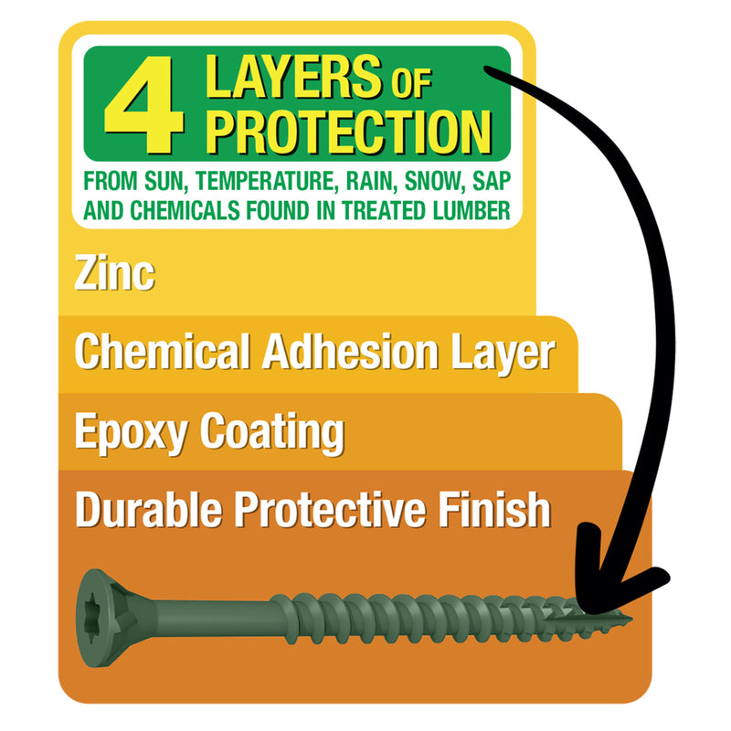 Deck Plus Green Deck Screws were designed to provide superior weather protection all while coordinating with your decking finish. Engineered using star drive technology, these screws are twice as durable as a Philips drive and prevent stripping. The green