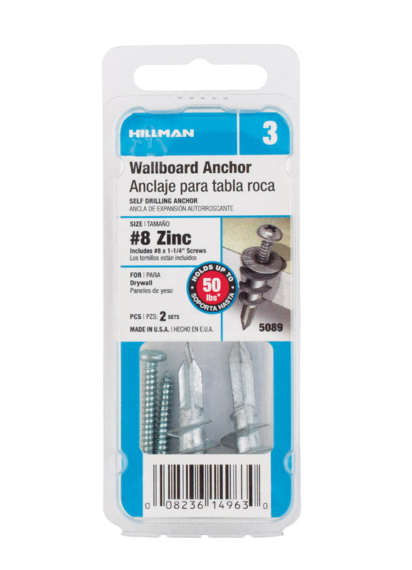 Hillman .164 in. D X 1-1/4 in. L Zinc Pan Head Wallboard Anchors 2 pk (5089)