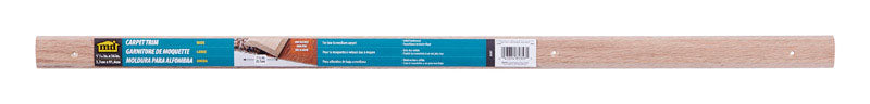 The Unfinished 1-7/16"x36" Hardwood carpet trim easily covers a seam or gap between two flooring surfaces of unequal height. Hardwood carpet trim prevents carpet edges from fraying, vinyl floor seams from curling and creates a smooth transition between different flooring surfaces. Hardwood trim is easily secured to wood and concrete floors with provided screws. For installation on concrete floors use wooden pegs (sold separately).