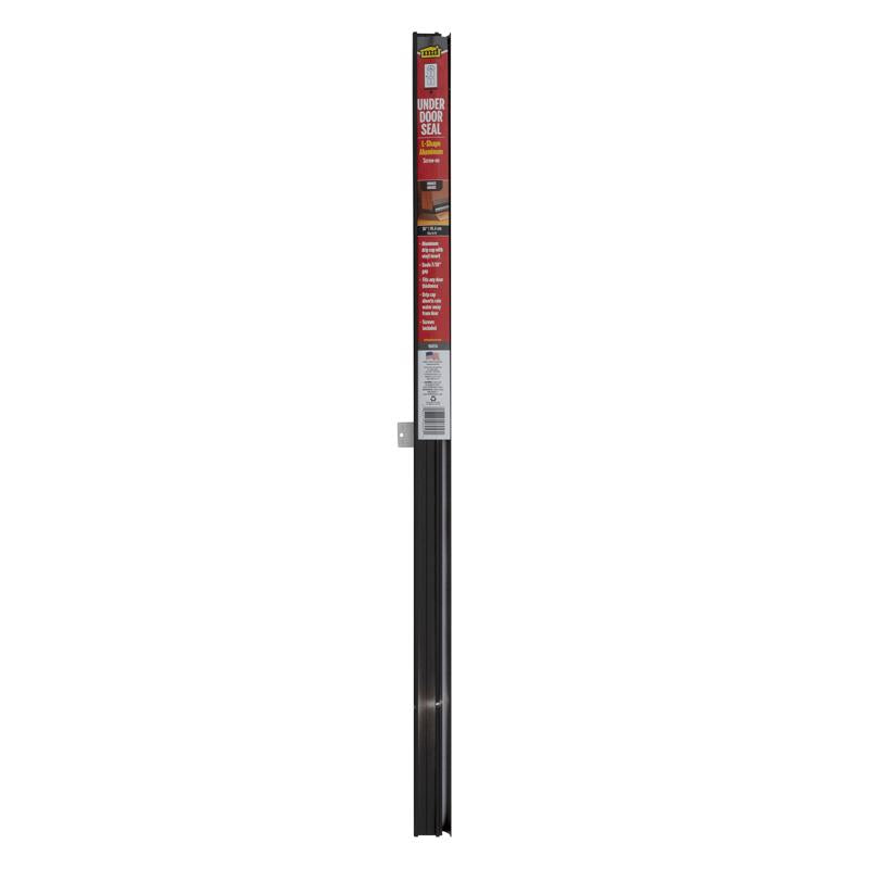 L-shaped door bottom with drip cap, fits both 1-3/8 and 1-3/4 inch doors. Seals between bottom of door and threshold to block out air and moisture. Slotted fastener holes allow easy installation and adjustment.