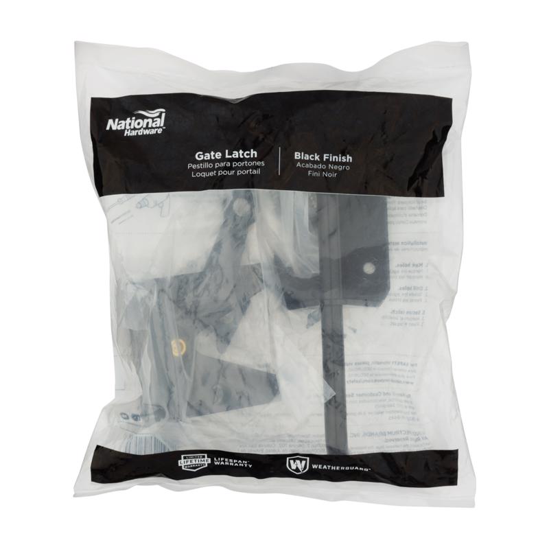 National Hardware's heavy-duty gate latch in black is used for out-swing gates, doors, and animal pens. Coated with Weatherguard protection to withstand harsh weather conditions and prevent corrosion.