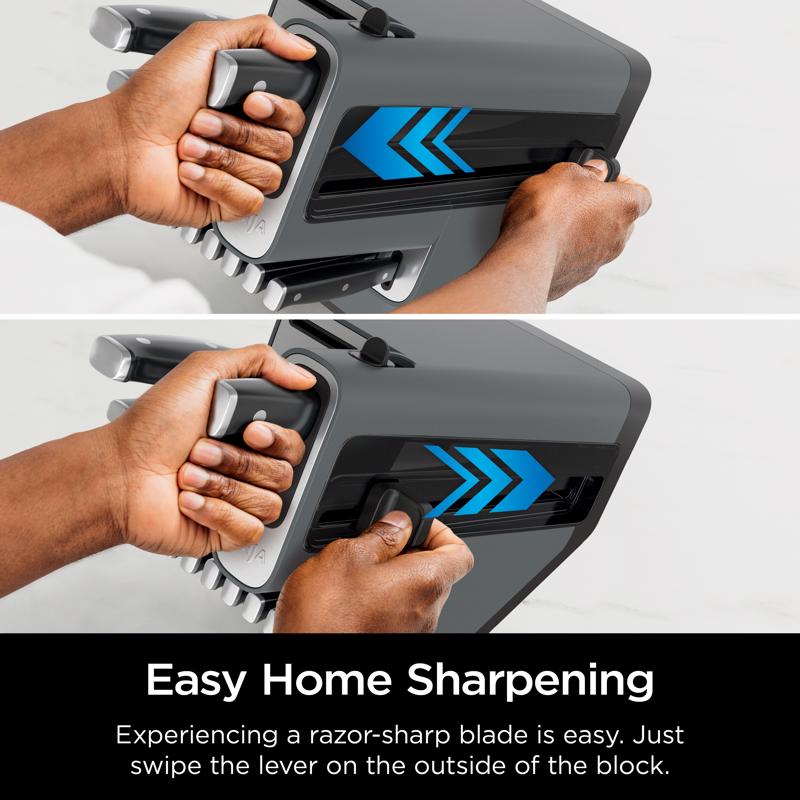 Introducing the Ninja NeverDull Black and Gray Premium Knife System, the premium knives that stay razor-sharp for over 10 years. This versatile set includes forged German stainless steel blades that are durable and perfectly balanced for comfort and control. With only a few swipes of the built-in foolproof sharpener, this all-in-one system maintains the superior sharp edge you crave use-after-use.