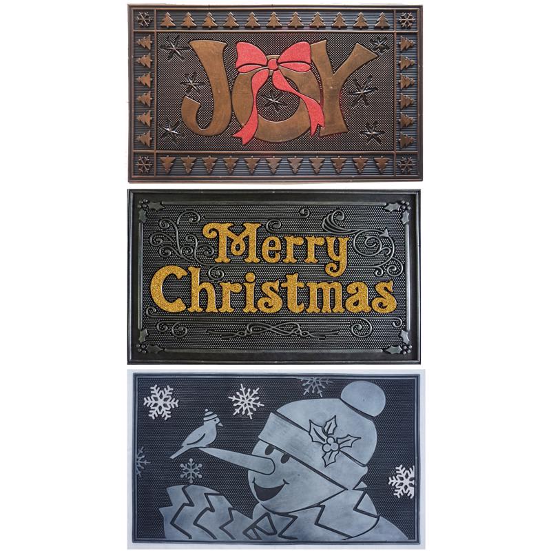 Holiday Rubber Mat Assortment - Includes two each of three designs hand painted rubber Artist mats. Each mat is a raised relief of a scene or design with hand-painted colors. Be sure in the safety and quality - non-slip rubber backing of our outdoor doormats not only guarantees the reliability of each step on entry rug, but also effectively protects your interior floor coverings. Rubber texture of front door mat outdoor retains toughness, does not fade and prevents wear and tear.