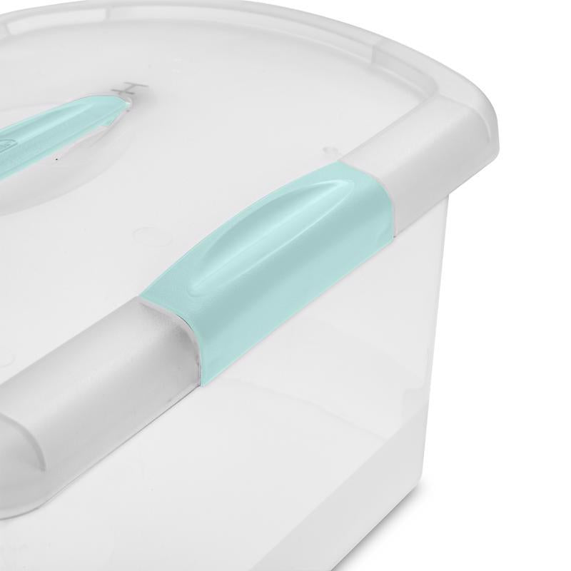 The large Nesting Showoffs accommodates letter size hanging folders and is a great solution for storing organizing and carrying small items around the home, office or classroom. Durable latches ensure that the lid remains securely attached to the base and a comfortable handle helps with sturdy, one-handed carrying. The see-through base allows for easy identification of the contents inside. This storage box accommodates letter-size hanging file folders.