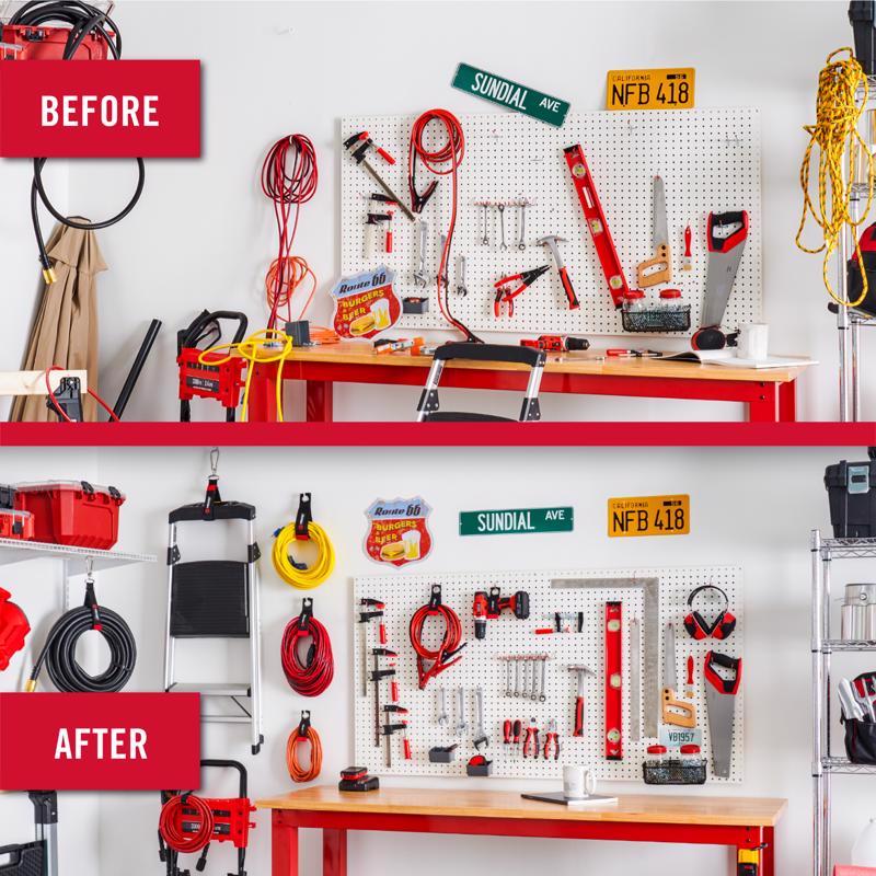 Velcro Brand Heavy Duty Extension Cord Holder organizer holds up to 100 pounds. Storage straps hang easily on hooks or nails and were designed specifically for heavy-duty extension cords; perfect for garage organization.
