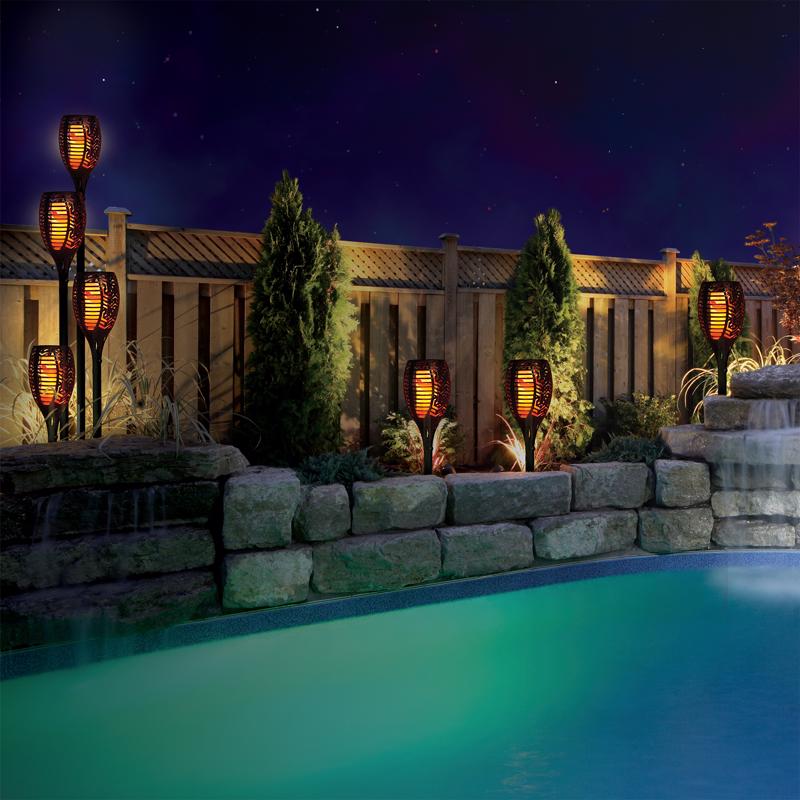 Transform your backyard into a tropical oasis. Our solar powered torch is maintenance free, requires no fuel or wiring. Just push the stake into the ground and you are ready to go. This premium number of LEDs create a smooth flame like flickering that mimics exactly a real life flame. A full UV protection is added to the housing to create a long lasting torch.