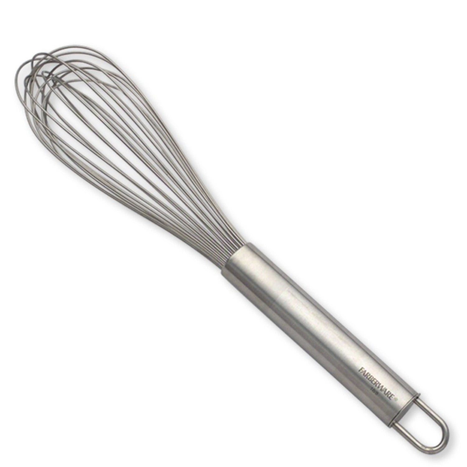 This strong and durable Farberware stainless steel whisk is an everyday essential. A hoop on the end of the handle allows for convenient hanging storage.