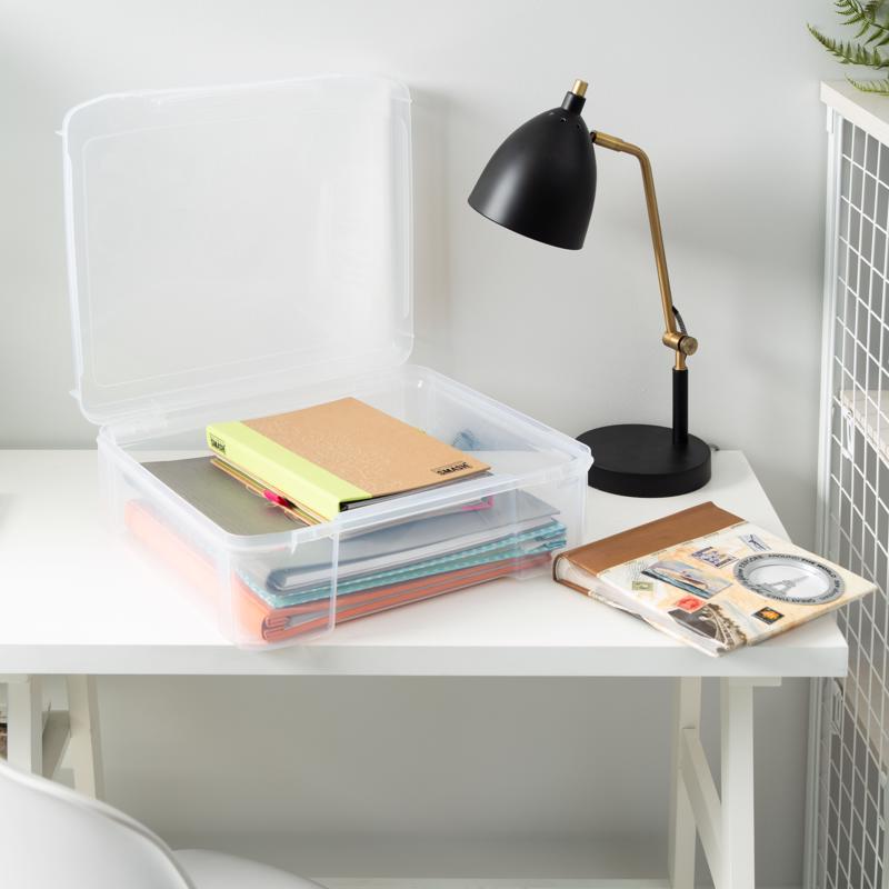A great portable storage solution for crafts including art projects, scrapbooking, paper crafting and yarn projects. Sized to store most 12 inch x 12 inch scrapbooking albums. Also ideal for toys, wallets and handbags, out-of-season clothing, office supplies or tools and cords in the garage.