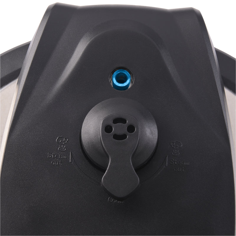 Presto 6-quart Programmable Electric Pressure Cooker Plus Liquid capacity 6 quarts (5.7 liters) 120 volts AC, 1000 watts Stock No. 02141 A pressure cooker and slow cooker in one! Cook meat, fish, chicken, vegetables, beans, rice, grains, even desserts. Select function settings for high pressure, low pressure, slow cook, brown, saute, and keep warm. It is fast and easy, just set and the rest is automatic. Features 19 programmed settings including 12 pressure cooking presets. Removable nonstick pot is dishwasher safe. Pressure cooker and slow cooker in one. Cook meat, fish, chicken, vegetables, beans, rice, grains, even desserts. Fast and easy, just set and the rest is automatic. Function settings for high pressure, low pressure, slow cook, brown, saute, and keep warm. High-speed pressure cooking preserves flavors and nutrients, tenderizes less expensive cuts of meat. Cooks up to 70 percent faster than ordinary cooking methods. Saves time, energy, and money. Nineteen programmed settings including 12 pressure cooking presets. The proper pressure is maintained automatically. Digital controls with an LED display count down the remaining cooking time. Timer signals when cooking time is complete. Special rack cooks several foods at once with no intermingling of flavors. Cooker switches to keep warm at end of cooking time to let pressure drop on its own. Quick pressure release valve. Removable nonstick pot is dishwasher safe. Eight built-in safety features. Presto is a registered trademark of National Presto Industries, Inc. in the United States of America and or other countries.