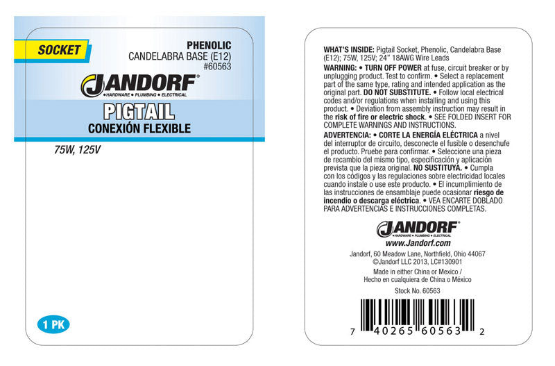 Jandorf Phenolic Candelabra Base Pigtail Socket 1 pk (60563)