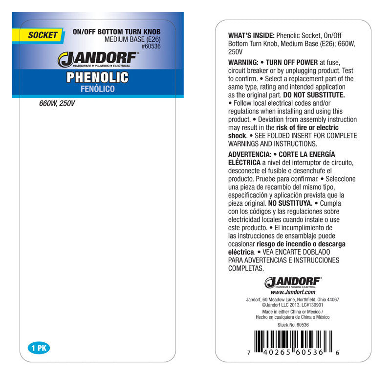Jandorf Phenolic Medium Base Bottom Turn Knob Socket 1 pk (60536)