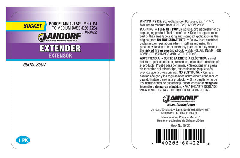 Jandorf Porcelain Medium Base Socket Extender 1 pk (60422)